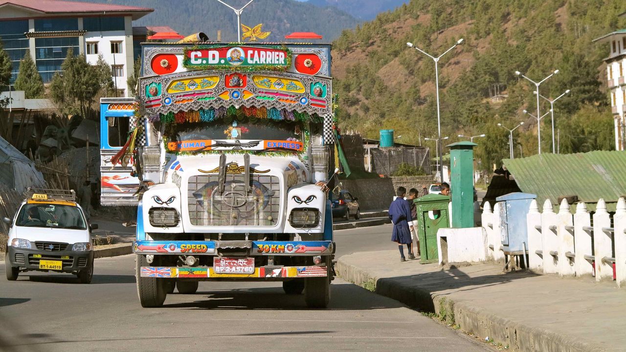 すれ違うトラックはどれもこんな感じで絵が書かれています。ヘッドライトの上に目がある。