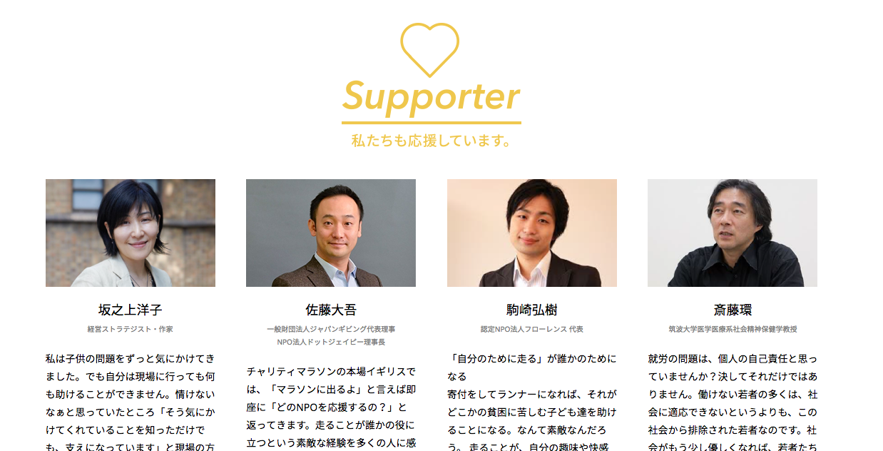 それは、「チャリティ枠」。10万円を指定のNPOに寄付すれば、必ず走れます。(枠が埋まった時点で締め切り)